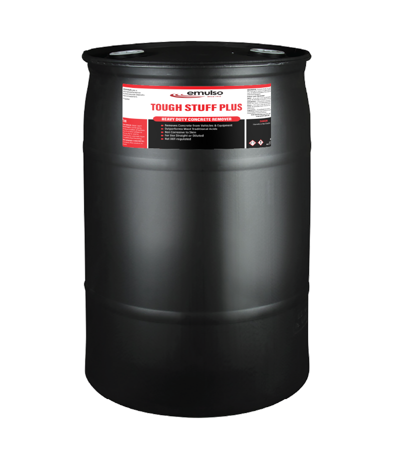 TOUGH STUFF PLUS uses a non-hazardous high-performance formula to remove concrete deposits from vehicles and equipment.